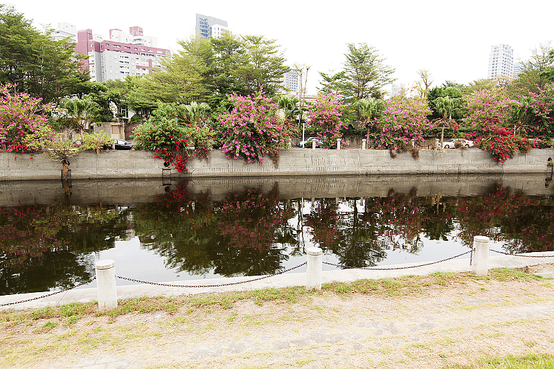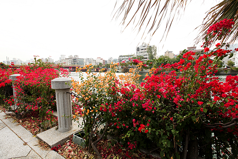 19.河岸有一些人造花卉,點綴河岸